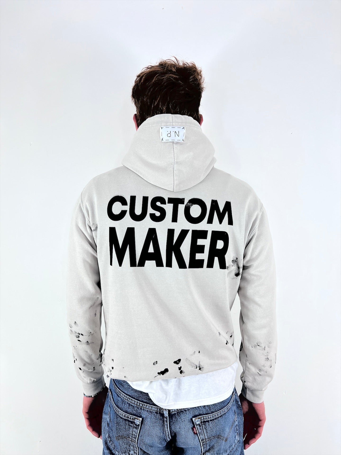 Ho rielaborato questa felpa eseguendo un lavaggio a pietra per ammorbidire e scolorire il tessuto.