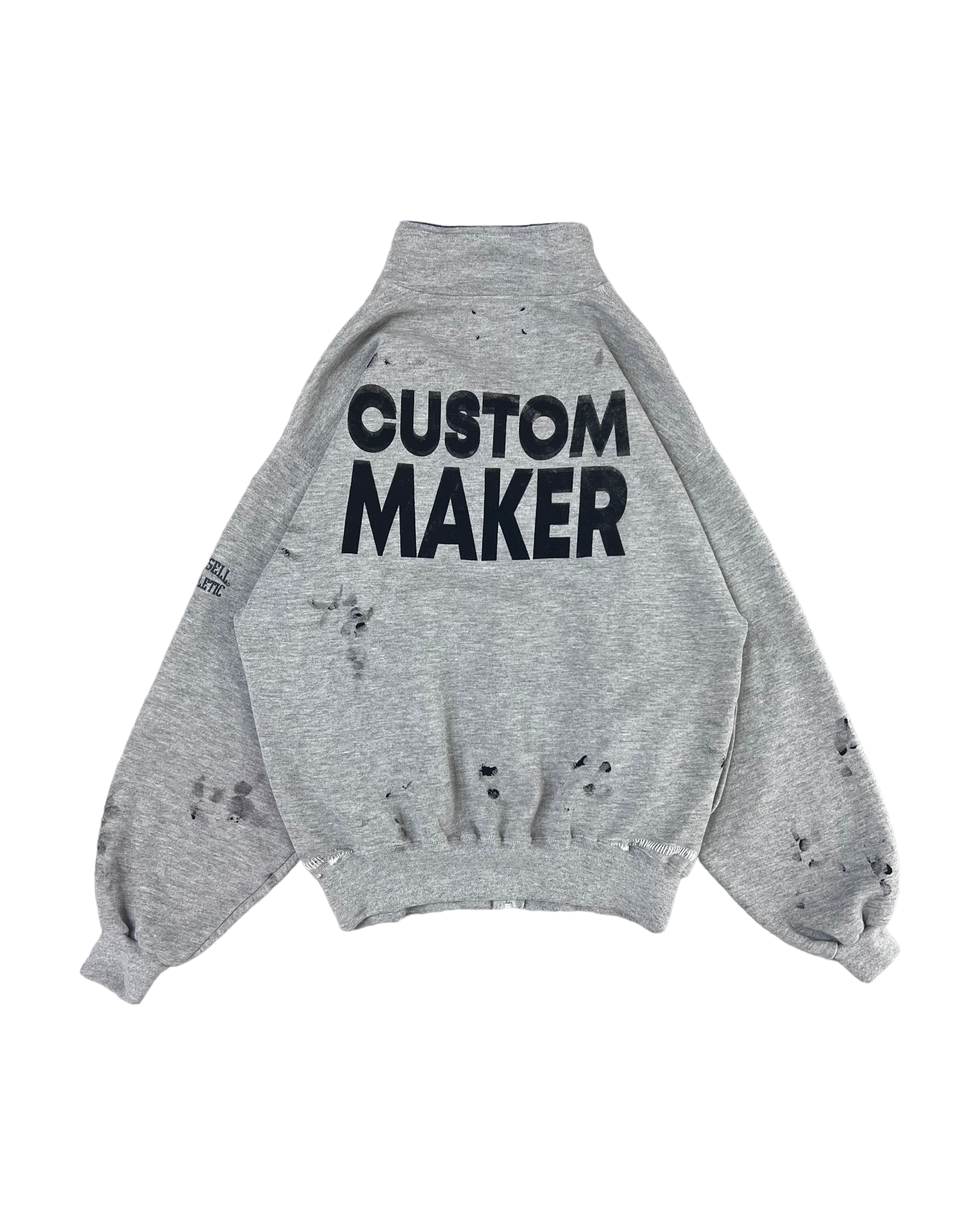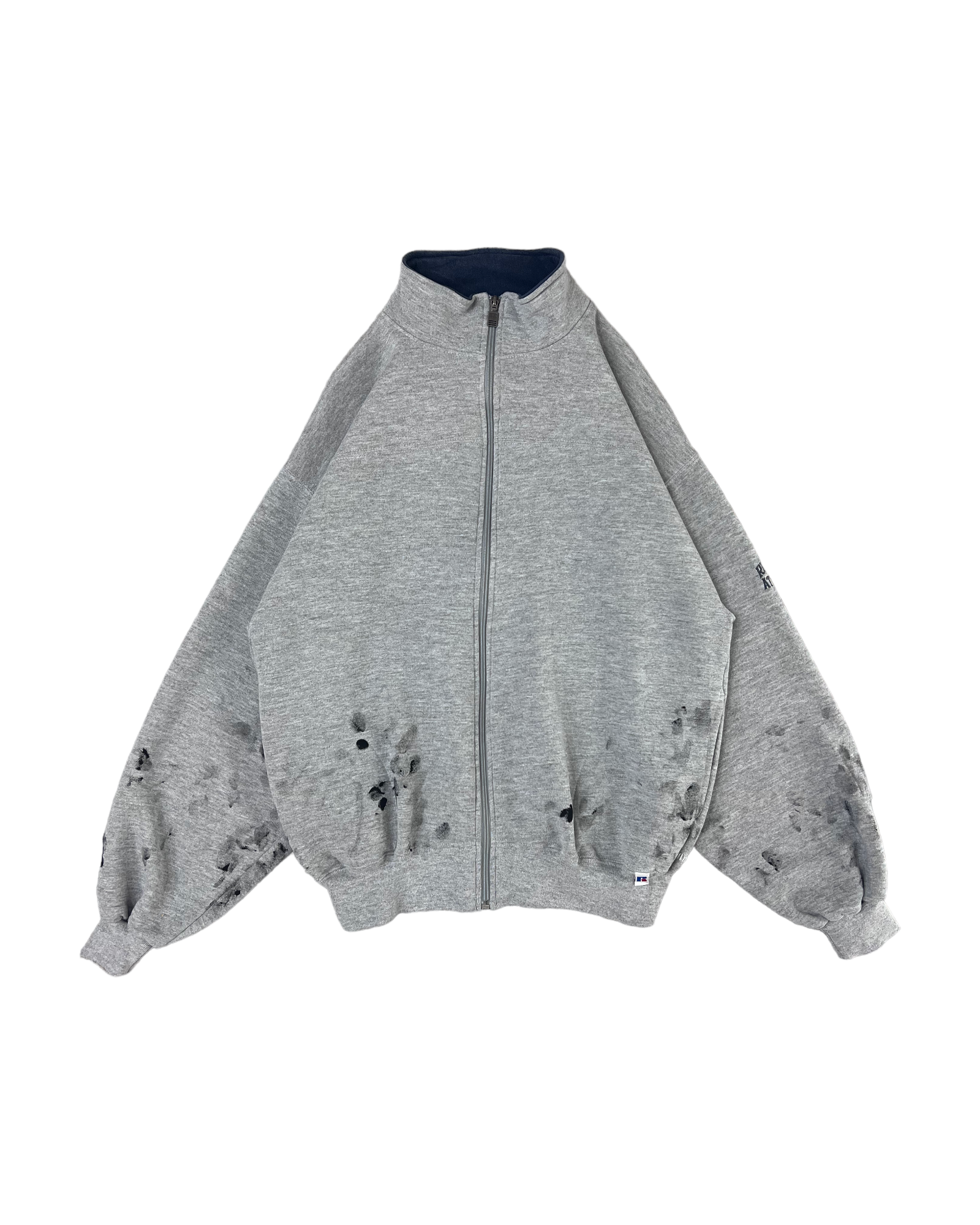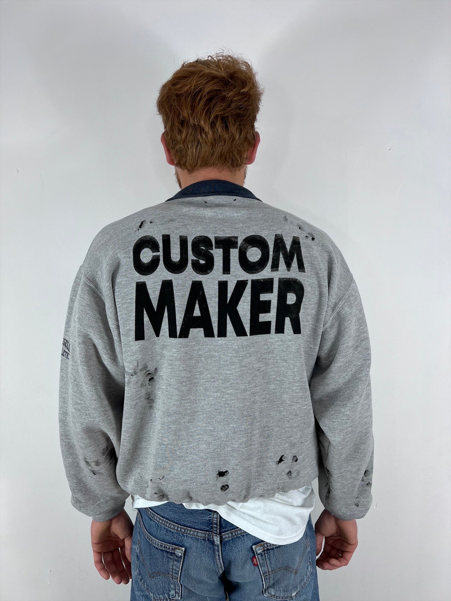 Ho rielaborato questa felpa eseguendo un lavaggio a pietra per ammorbidire e scolorire il tessuto.