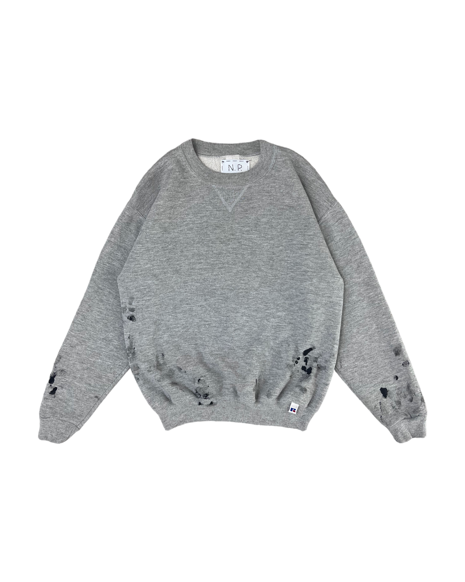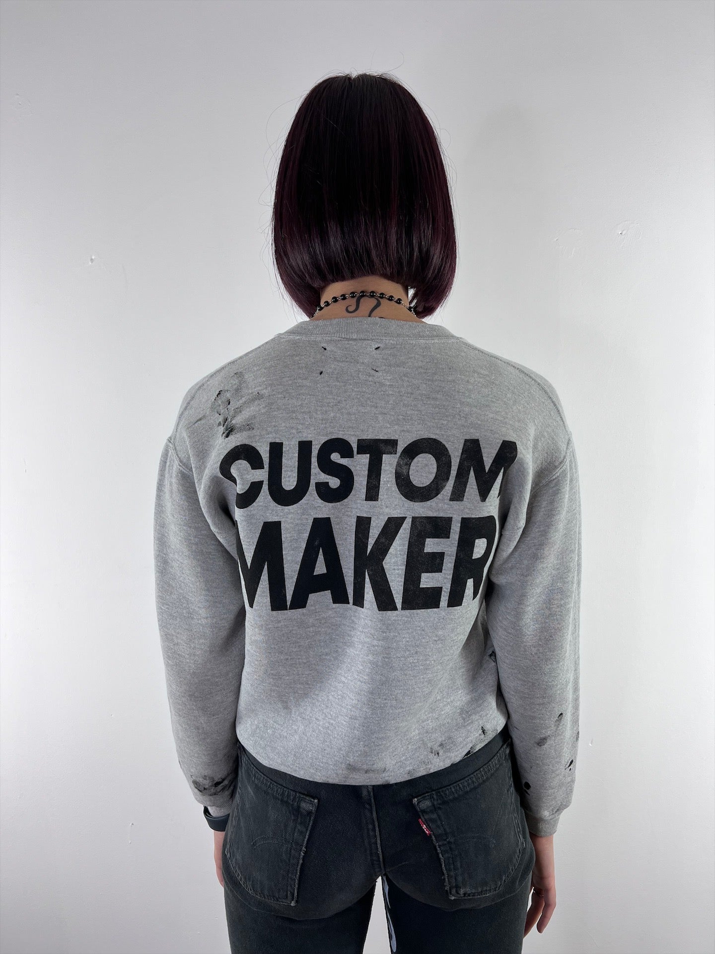 Ho rielaborato questa felpa eseguendo un lavaggio a pietra per ammorbidire e scolorire il tessuto.