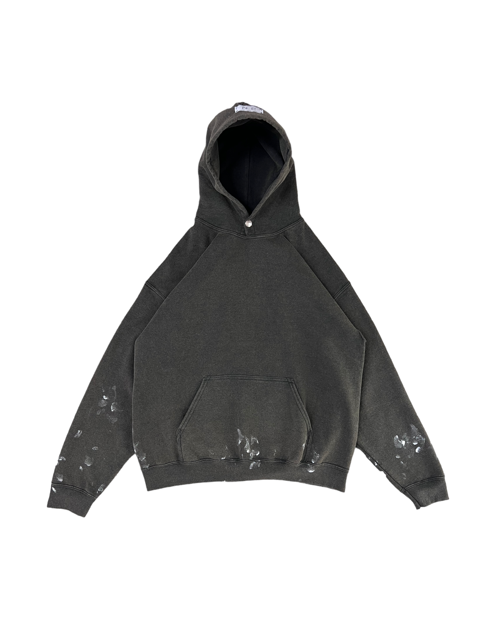 Ho rielaborato questa felpa eseguendo un lavaggio a pietra per ammorbidire e scolorire il tessuto.