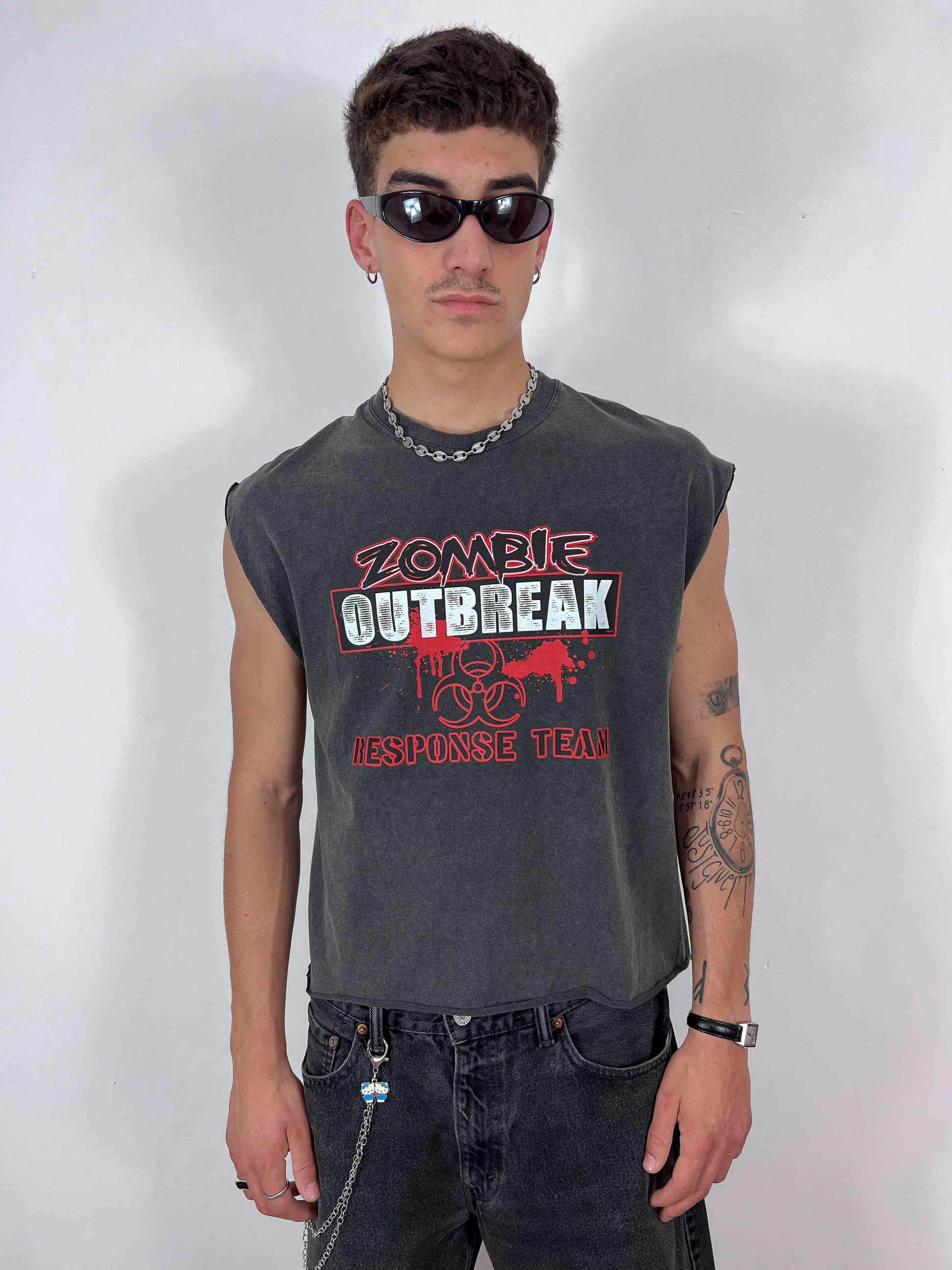 Ho smanicato e tagliato questa t-shirt vintage, rendendo il fit crop.