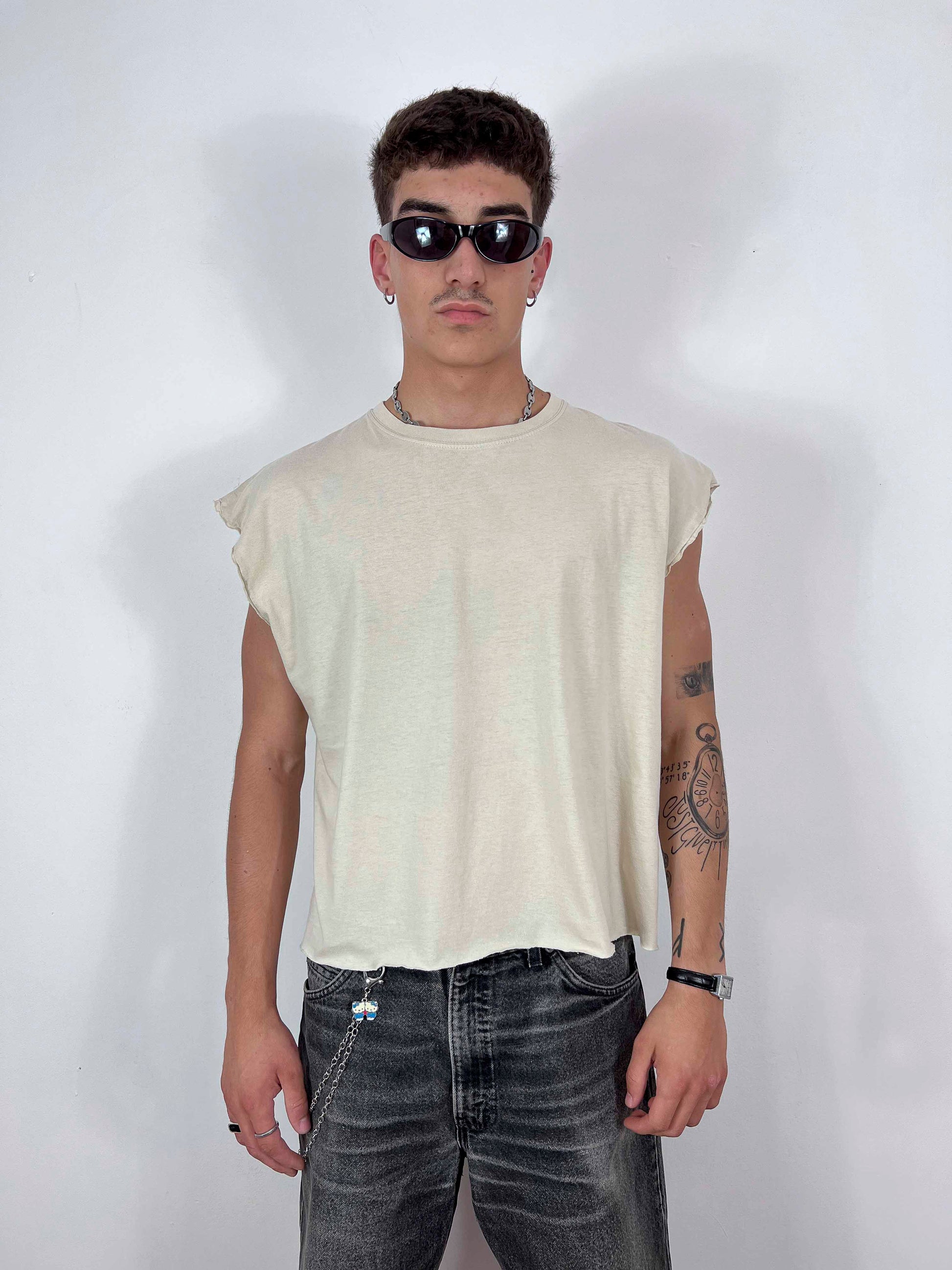 Ho smanicato e tagliato questa t-shirt vintage, rendendo il fit crop.