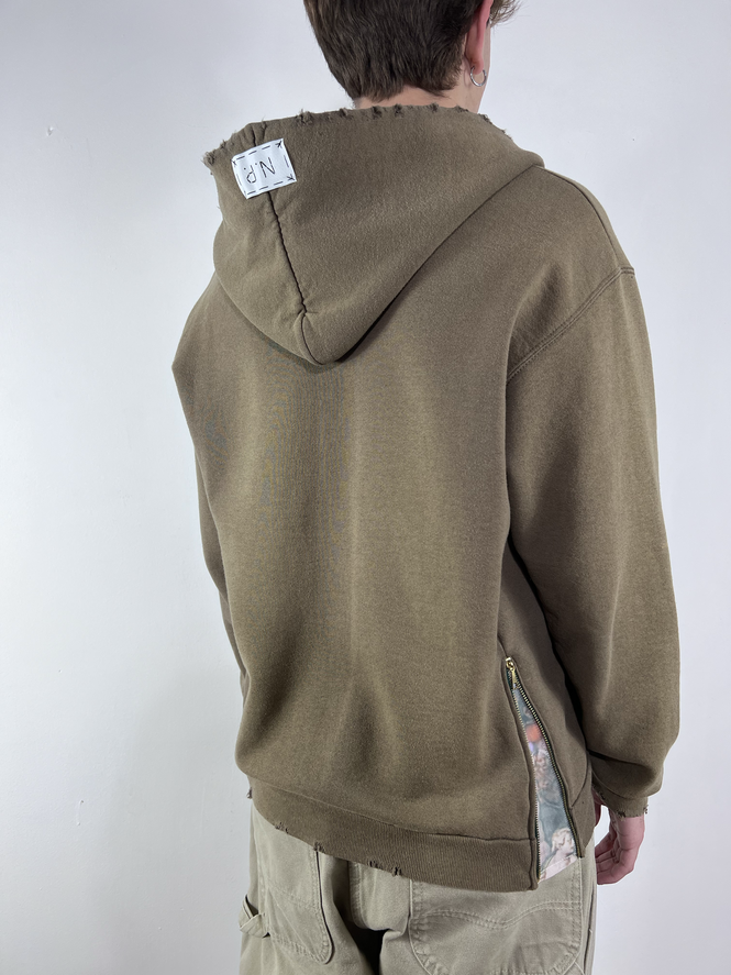 Ho rielaborato questa hoodie vintage Fruit of the loom inserendo ai lati due zip con all' interno un particolare de "Il Giudizio Universale" di Michelangelo.