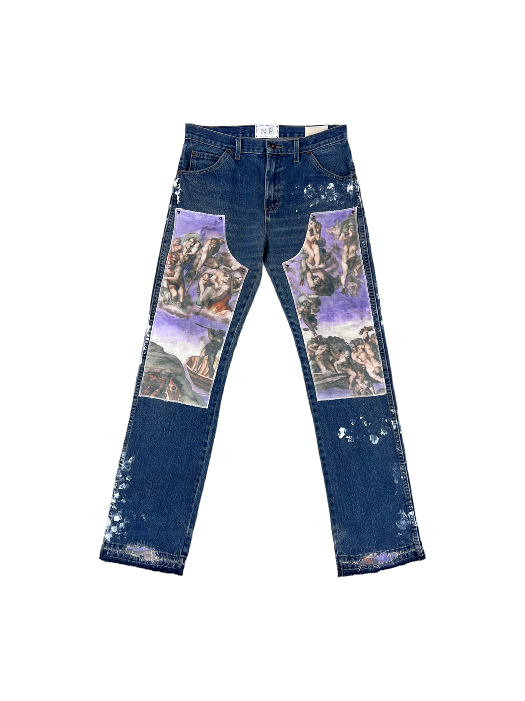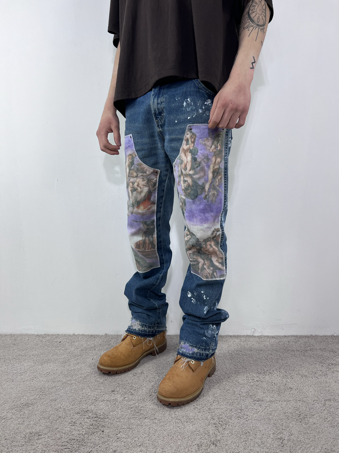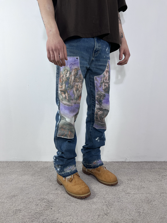 Ho rielaborato questo Dickies vintage creando due patch double knees raffiguranti "il giudizio universale" di Michelangelo.