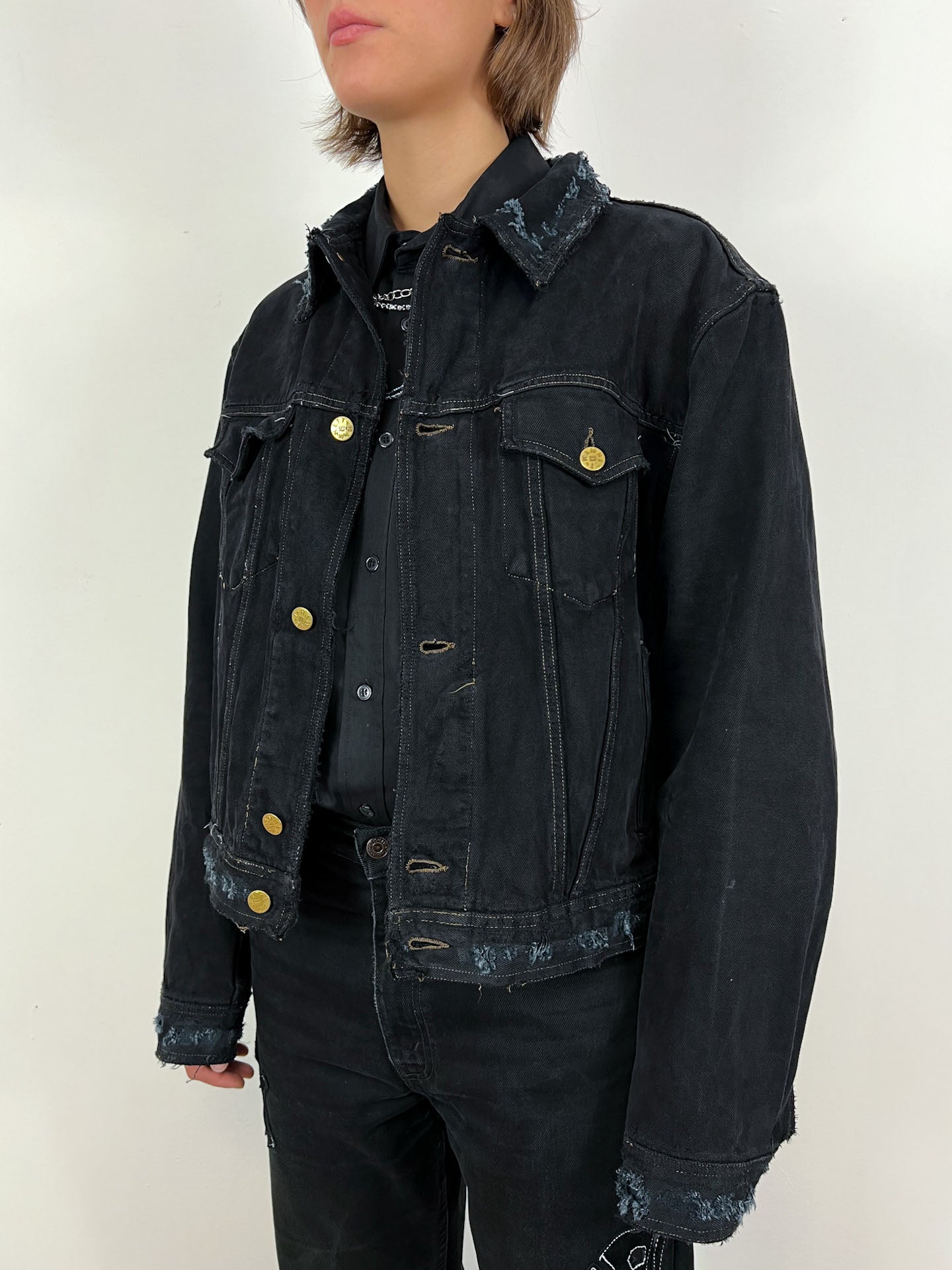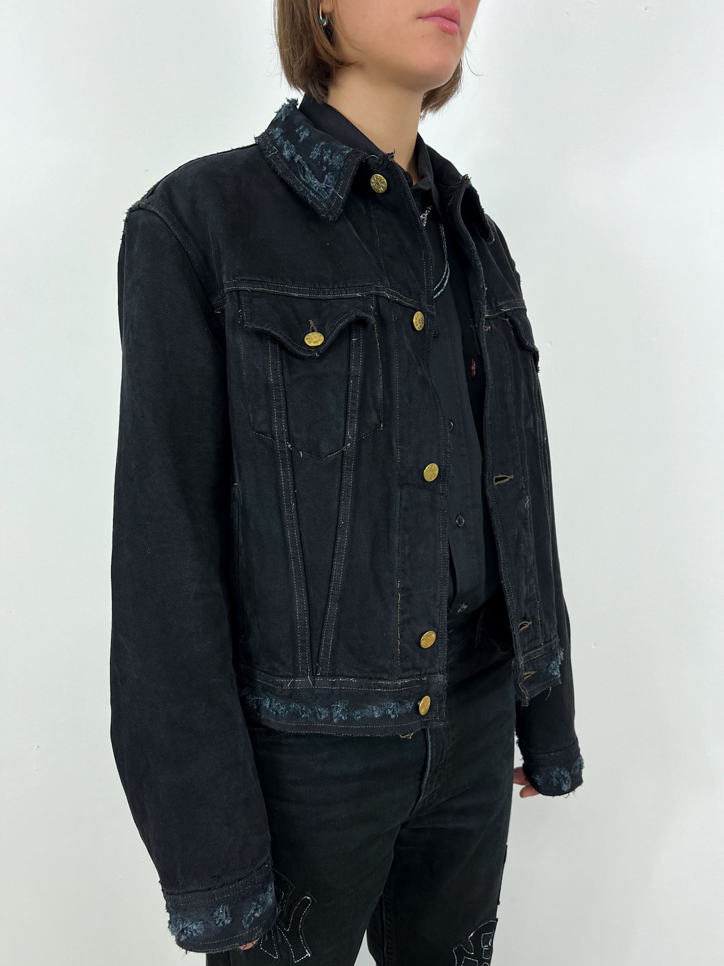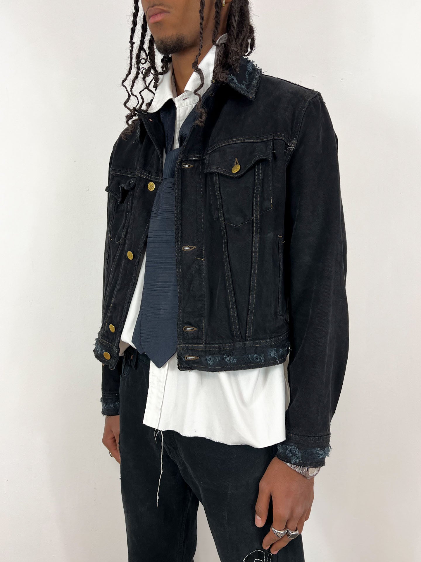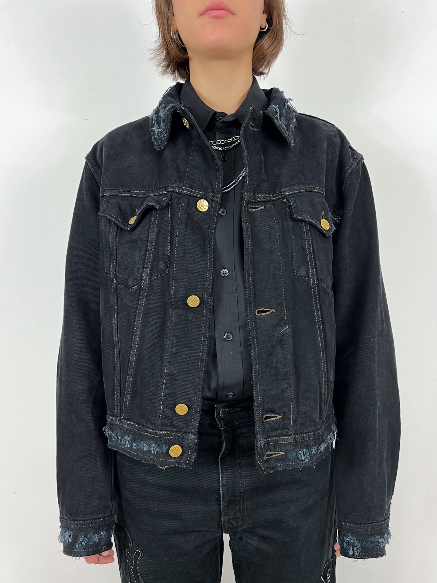 Lavorazioni eseguite su jacket nero vintage selezionato a mano. Custom caratterizzato da usure eseguite sul colletto, polsini delle maniche e fondo del jacket.