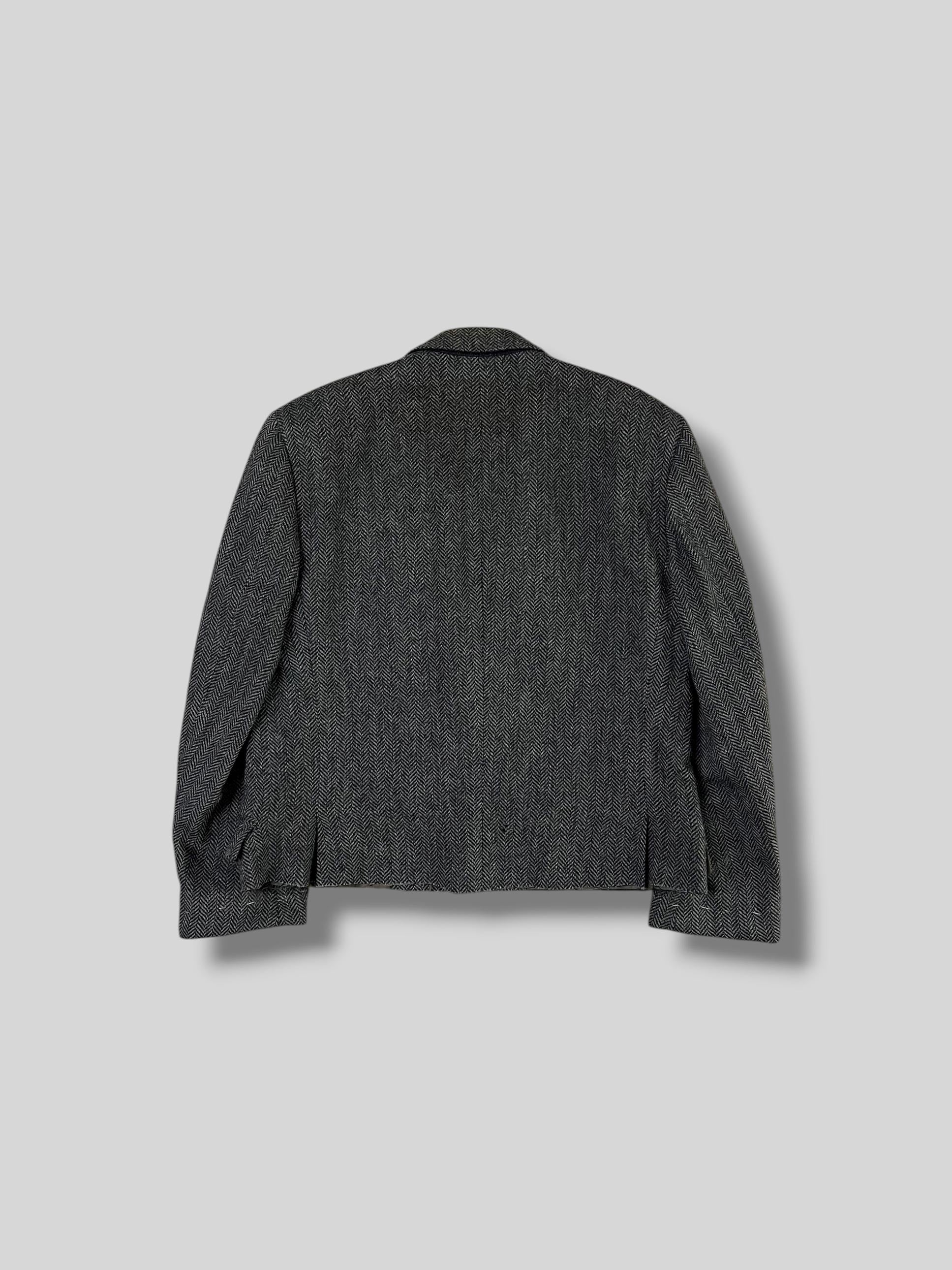 Blazer vintage selezionato a mano. Capo trasformato rendendo il fit boxi a taglio vivo e rifinito con la stampa NPNY realizzata con colore bianco da tessuto.