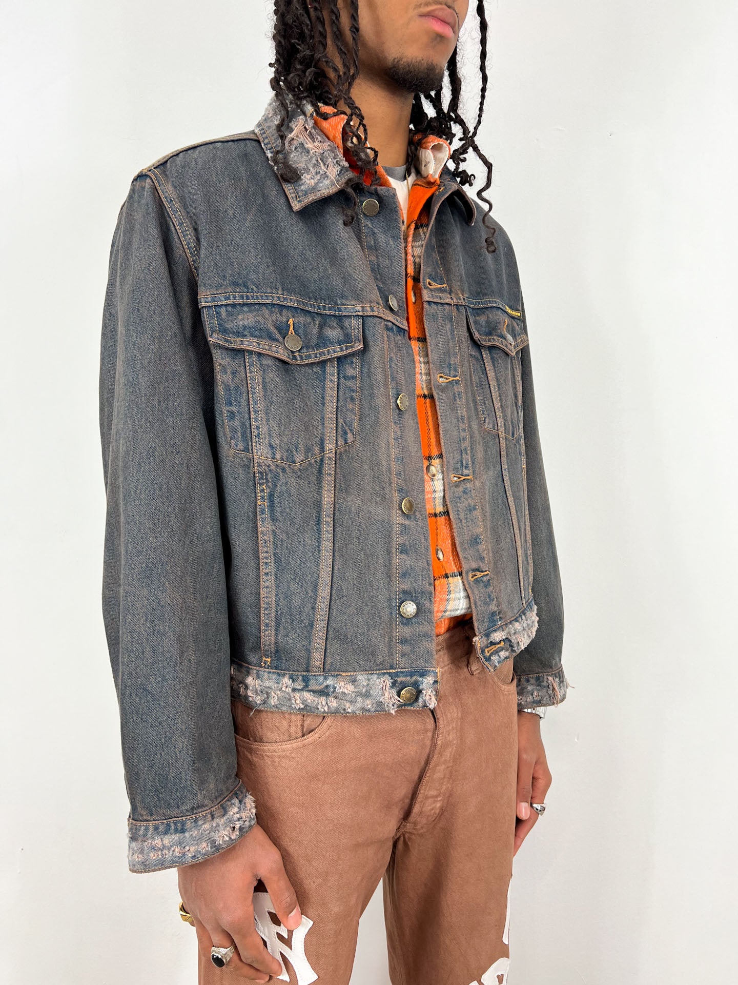 Lavorazioni eseguite su jacket vintage selezionato a mano e colorato al caffè. Custom caratterizzato da usure eseguite sul colletto, polsini delle maniche e fondo del jacket.