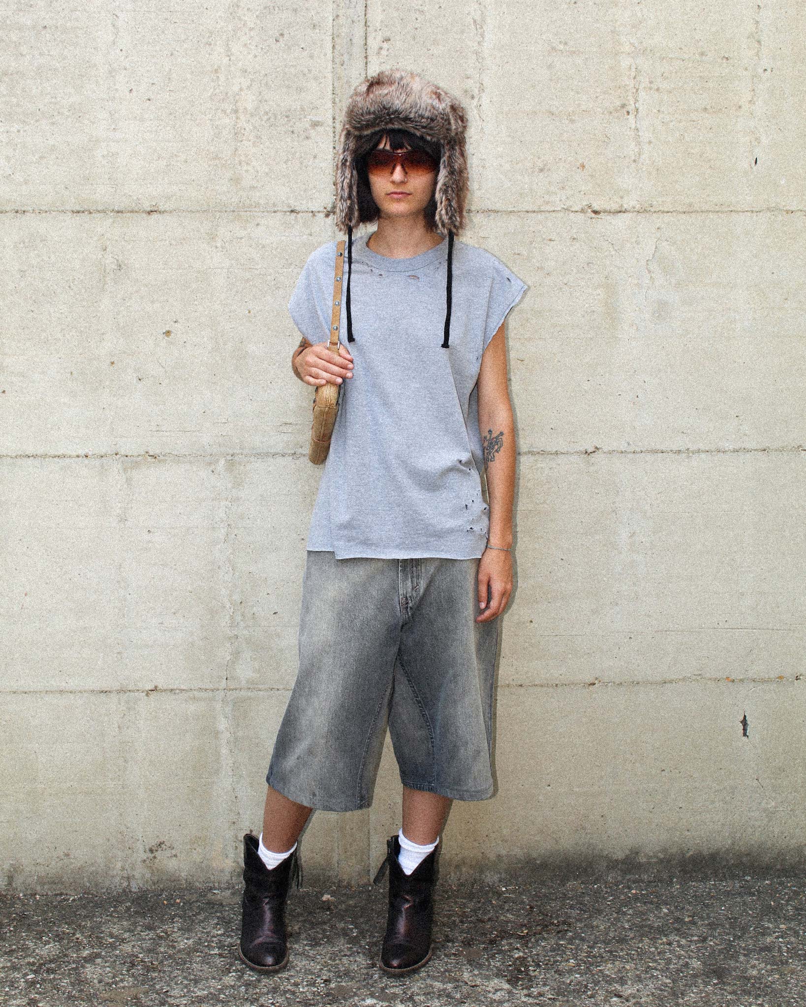 In questa foto la modella è alta 1,67 e pesa 50kg ed indossa una taglia W31.
