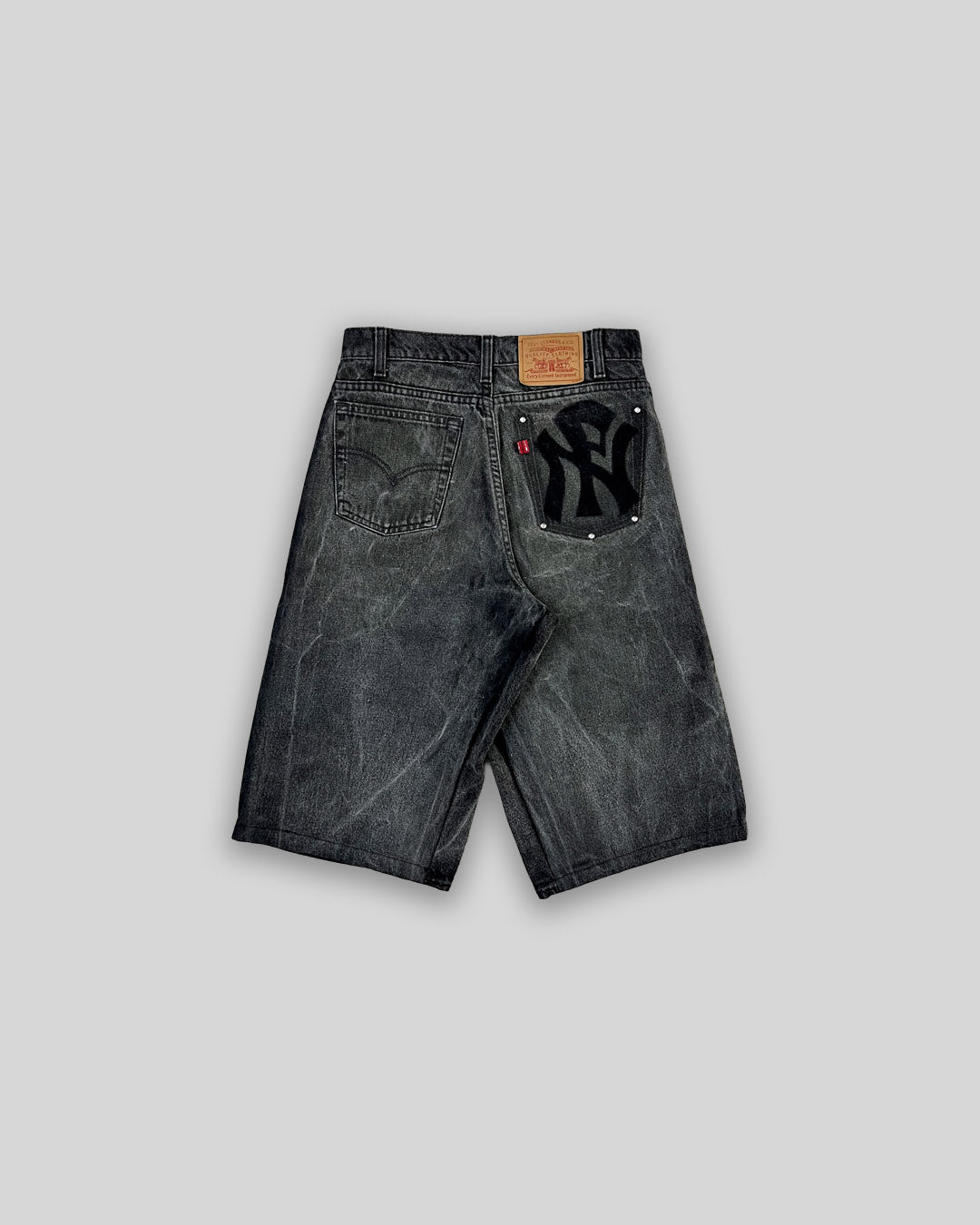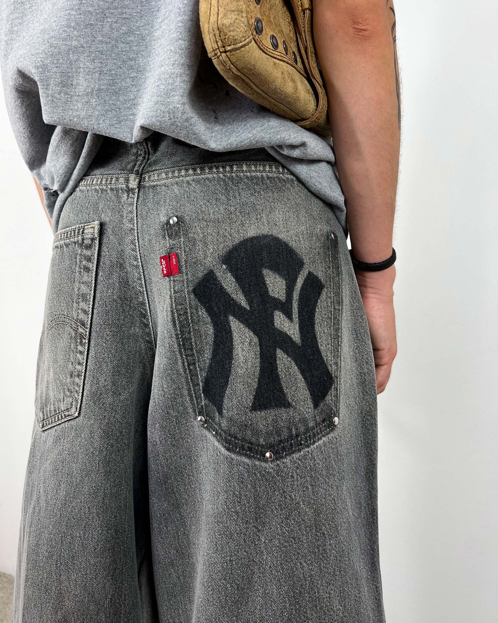 Lavorazioni eseguite su jeans Levi's vintage selezionato a mano. Custom caratterizzato da un lavaggio faded e dal fit loose.
