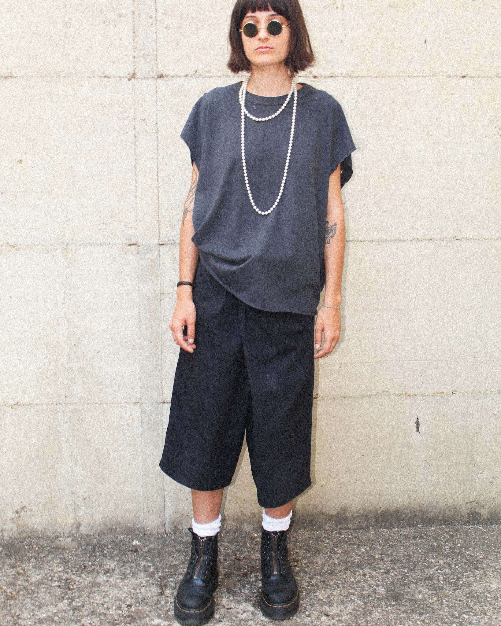 In questa foto la modella è alta 1,67 e pesa 50kg ed indossa una taglia W31.