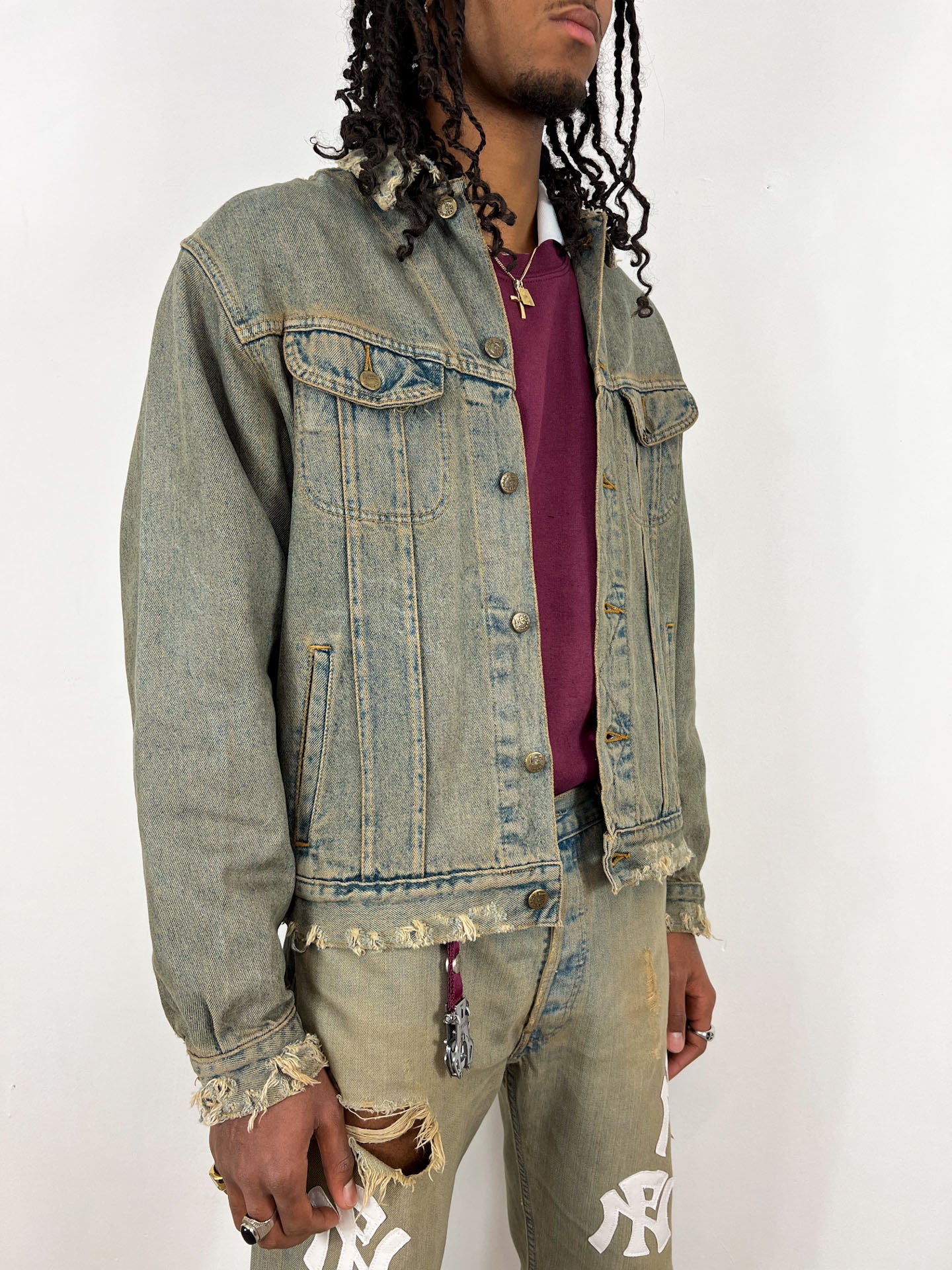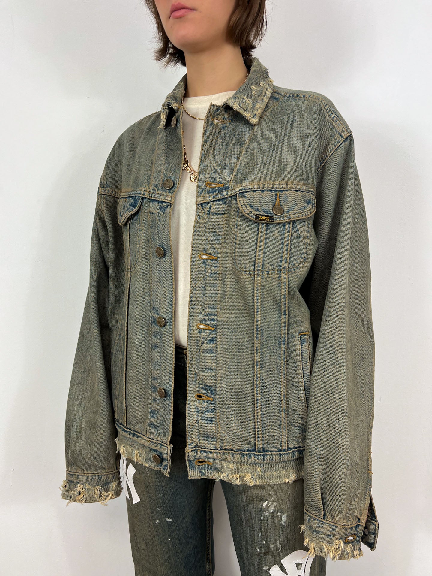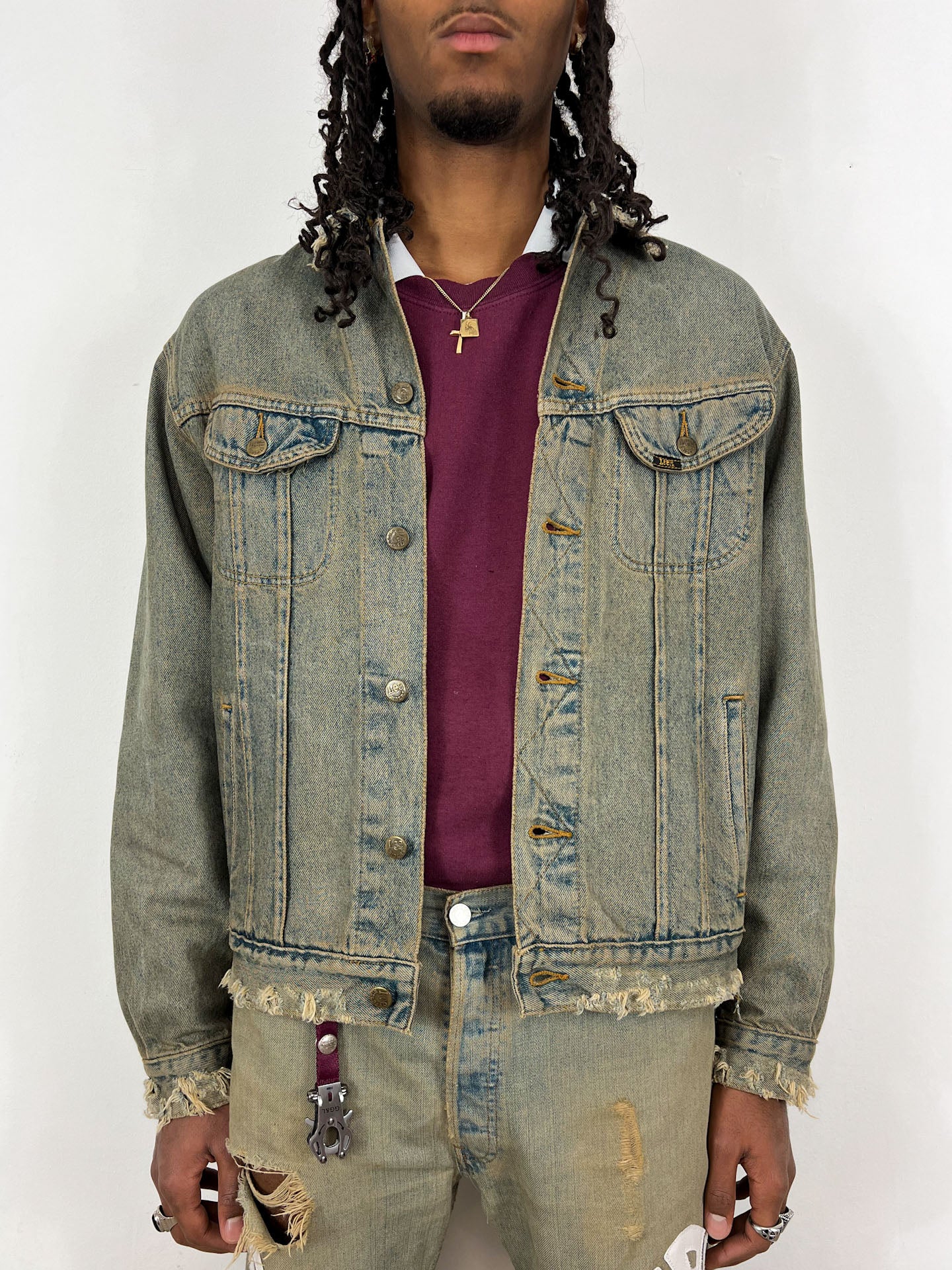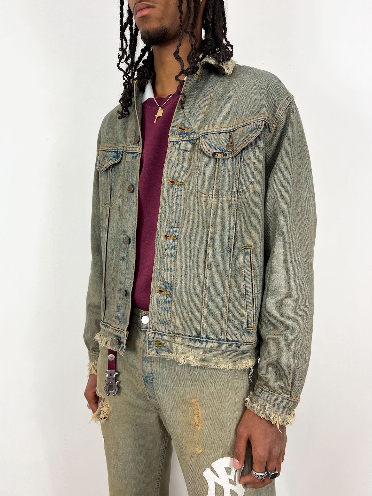 Lavorazioni eseguite su jacket vintage selezionato a mano e colorato al tea. Custom caratterizzato da usure eseguite sul colletto, polsini delle maniche e fondo del jacket.