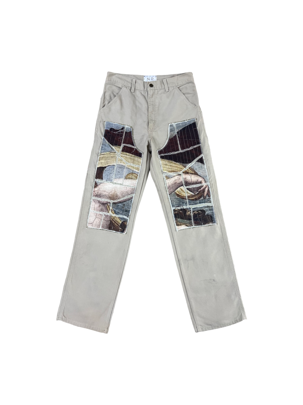 Ho rielaborato questo Carhartt vintage creando due patch double knees raffiguranti "Trionfo di Galatea" di Raffaello.