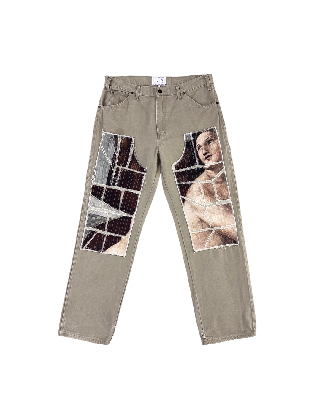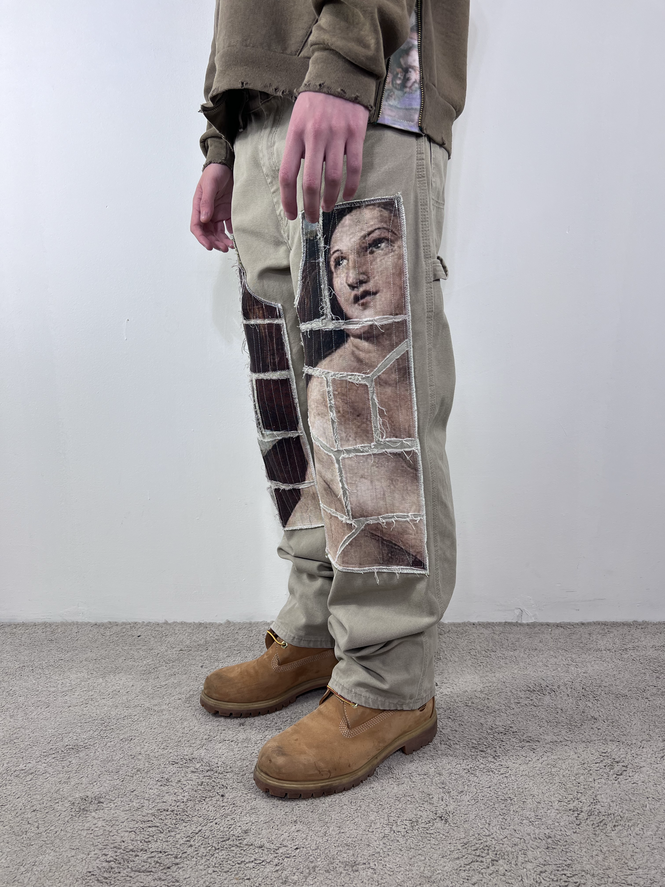 Ho rielaborato questo Dickies vintage creando due patch double knees raffiguranti "Trionfo di Galatea" di Raffaello.
